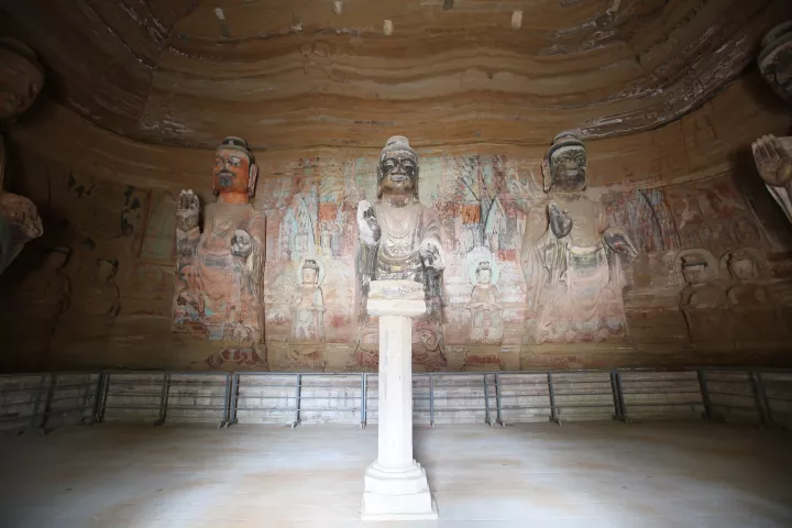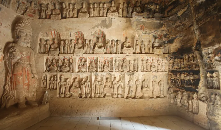 开凿于北魏永平二年,窟龛密集、形如蜂房,文物保存完整、内容丰富,现有编号窟龛 308 个,石雕及彩塑造像约 2429 身,石碑 8 通,阴刻和墨书题记 152 方,壁画彩绘 96.7 平方米。