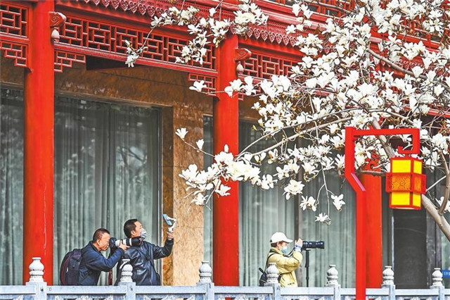 秦州古城玉兰绽放。