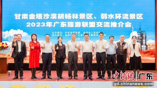 由甘肃酒泉市金塔县委、金塔县政府主办的金塔沙漠胡杨林景区、弱水环流景区2023年广东旅游联盟交流推介会,于3月24日在广州举行。