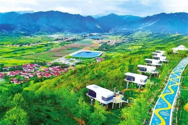 星语云端位于和政县境内、与太子山旅游大通道相连的大桦梁上,建有时尚浪漫的太空舱式高档民宿、木屋式生态民宿、帐篷酒店式民宿和星月居科幻主题民宿。在这里,可以享受野性山林里的现代浪漫,夜晚,游客躺在床上便能将漫天繁星一览无遗;白天,站在屋外的阳台上,松鸣小镇全景尽收眼底。住在此处,犹如置身于天地之间,别有一番风情。