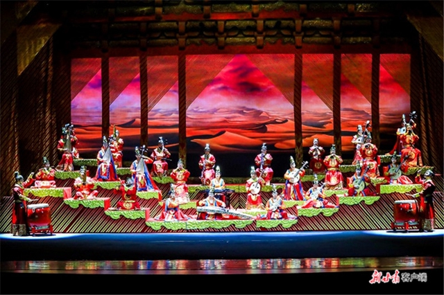 2021年“一会一节”期间,《玄奘西行》在敦煌震撼上演。演出结束后,中央民族乐团将该剧价值360万元的乐谱、舞美、道具和服装悉数捐赠甘肃省歌舞剧院,合力将《玄奘西行》打造成为弘扬丝路精神、推动丝路文化交流融合的经典剧目。随后,国内重点民族乐器生产厂商——上海民族乐器一厂有限公司向甘肃省捐赠敦煌古筝、瑟、莲花阮、南音琵琶、五弦琵琶、敦煌大鼓、凤首箜篌等价值60余万元的19件仿唐代古乐器,支持《玄奘西行》在甘肃的落户演出。(文/新甘肃·甘肃日报记者 施秀萍)