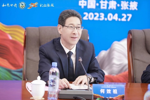 何效祖在致辞中指出,丝绸之路作为连接欧、亚、非三大洲的商业贸易之路,作为最古老、最具影响力的人文沟通之路,联通了60多个国家,汇集了80%的世界文化遗产,是世界上最具活力和潜力的黄金旅游通道。丝绸之路旅游推广联盟成立近八年来,各成员单位责任共担、资源共享、市场共促、形象共推,广大文旅企业、新闻媒体积极参与支持,助力丝绸之路旅游品牌享誉世界。他表示,甘肃省文旅厅将充分发挥联盟秘书处作用,主动担当、积极作为,进一步加强与各成员单位的协调沟通,不断完善运行机制,创新工作方式,优化工作流程,用心用情做好协调服务,有力有效推动联盟发展。希望联盟各成员单位紧紧抓住全球旅游市场重启、产品重塑、产业重组、行业重振契机,各展其能、各尽其责,多提建议、多出良策,凝聚合力,努力把丝绸之路文旅资源整合起来、精品线路串联起来、核心品牌打造出来,携手推动丝绸之路旅游宣传推广合作迈上新台阶。