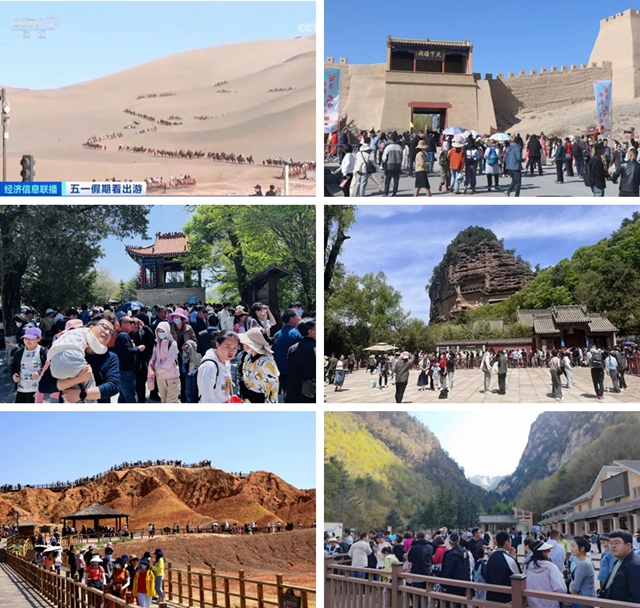 敦煌行·丝绸之路国际旅游节效应明显。随着第11届敦煌行·丝绸之路国际旅游节及其系列活动的成功举办,今年“五一”假期,作为国内传统热门长线旅游目的地的甘肃省热度大增,“交响丝路·如意甘肃”文旅品牌让甘肃旅游市场呈现出快速升温的喜人态势。面向海内外旅行商和广大游客的文化传播、旅游推广和招商引客活动,以及一系列历久弥新、独具特色的精品旅游产品线路,让更多的海内外游客走进交响丝路、畅游如意甘肃,共享旅游美好生活。