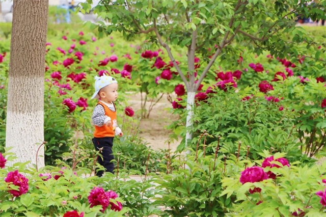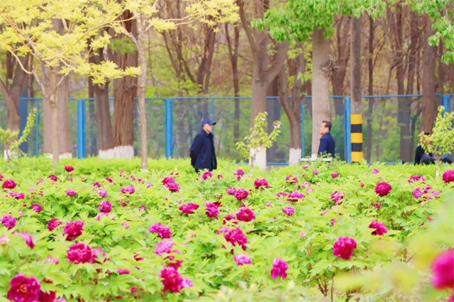 成群结队的人们徜徉在牡丹花海,尽情享受初夏的馈赠。