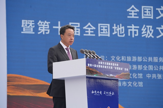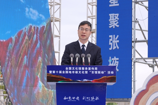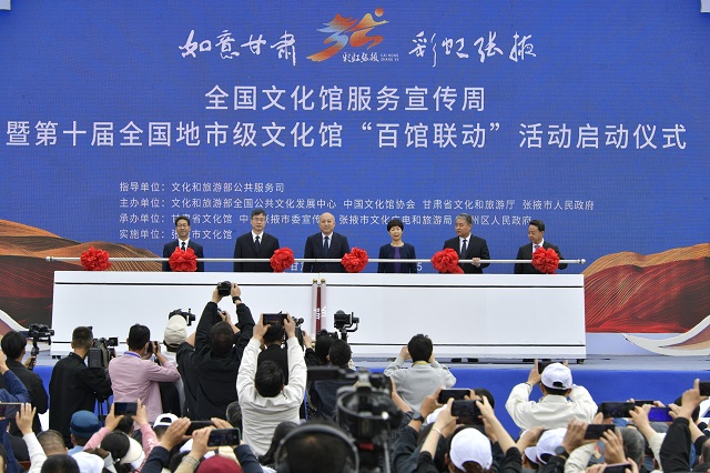 5月24日上午10时,由文化和旅游部公共服务司指导,文化和旅游部全国公共文化发展中心、中国文化馆协会、甘肃省文化和旅游厅、张掖市人民政府共同主办的2023年全国文化馆服务宣传周暨第十届全国地市级文化馆“百馆联动”活动在甘肃张掖市启动。