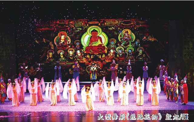 丝路漫漫,花雨缤纷,经典舞剧《丝路花雨》精彩绽放。取材于敦煌壁画和丝绸之路,被誉为甘肃歌舞剧目艺术作品、“中国民族舞剧的典范”和“活的敦煌壁画”的大型舞剧《丝路花雨》,作为“百馆联动”活动文艺展演的首场演出亮相张掖大剧院,来自省歌舞剧院的艺术家们用绚丽多彩的舞蹈、极富张力的演绎诠释跌宕起伏的情节,使得现场观众走进古丝绸之路的历史画卷,沉浸其中,为与会嘉宾献上了一场经典的丝路文化盛宴。