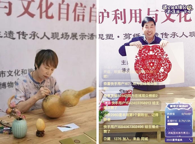 活动现场,两馆形式新颖的各种活动吸引了大批群众及专业学者前来参观。特别是雕刻葫芦、剪纸制作、泥塑制作三项特色活动的现场展示十分火爆,每一处都围满了好奇的游客市民,处处一派热闹非凡的景象。同时,还有非遗知识展板亮相街头,一旁有讲解员不停用精彩的讲解为参观者诠释着优质的传统文化,全程吸引了大批市民驻足围观。现场还通过短视频直播的方式,引来众多观众观看并纷纷点赞。