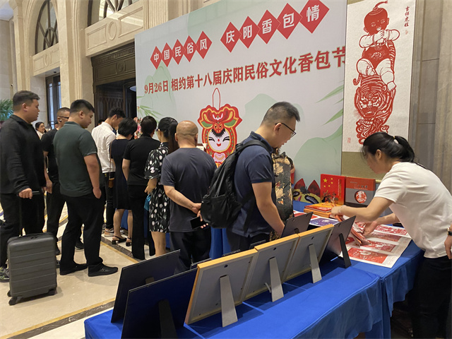 推介会上,庆阳文旅推介官向参会代表推介了第十八届庆阳民俗文化香包节,介绍了庆阳香包的意义价值及产业发展情况,并发布了第十八届庆阳民俗文化香包节的召开时间、主题、节会内容及支持政策,同时向参会代表发出9月26日相约庆阳民俗文化香包节的邀请。活动现场,展示了庆阳民俗文化产品,精美的庆阳香包和剪纸吸引了现场众多目光。