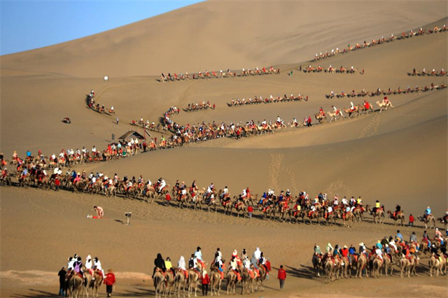 正值暑期,甘肃省敦煌市迎来旅游旺季。鸣沙山下“堵骆驼”,莫高窟门票供不应求,旅游演艺凌晨仍在进行……但敦煌的最美风景,并非仅在一“夏”。