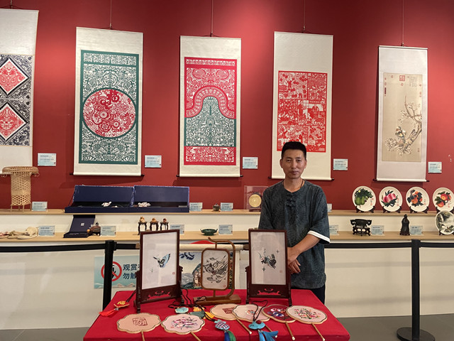 甘肃省文化和旅游厅精选全省各地优秀非物质文化遗产代表性项目亮相京津冀甘黔湘非遗精品展。展会上既有环县皮影、白银剪纸、庆阳剪纸、兰州太平鼓、安口砂器制作技艺、保安族腰刀锻造技艺等国家级非遗代表性项目的优秀作品精彩亮相,还有嘉峪关大漠风雨雕石艺画、靖远剪纸、甘谷麻鞋、麦积根雕、凉州堆绣、天水木雕、陇南传统大漆技艺《陇上江南•荷韵》、羲皇赐福香灰葫芦、掐丝珐琅工艺彩陶等甘肃省省级、市级非遗代表性项目的精美文创产品一一呈现,吸引了众多市民游客驻足观赏、拍摄,大获好评,充分展示了甘肃各地非遗形象,多角度展现了中华传统文化的魅力。