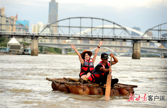 游客在兰州体验羊皮筏子漂流。新甘肃·奔流新闻记者 裴强