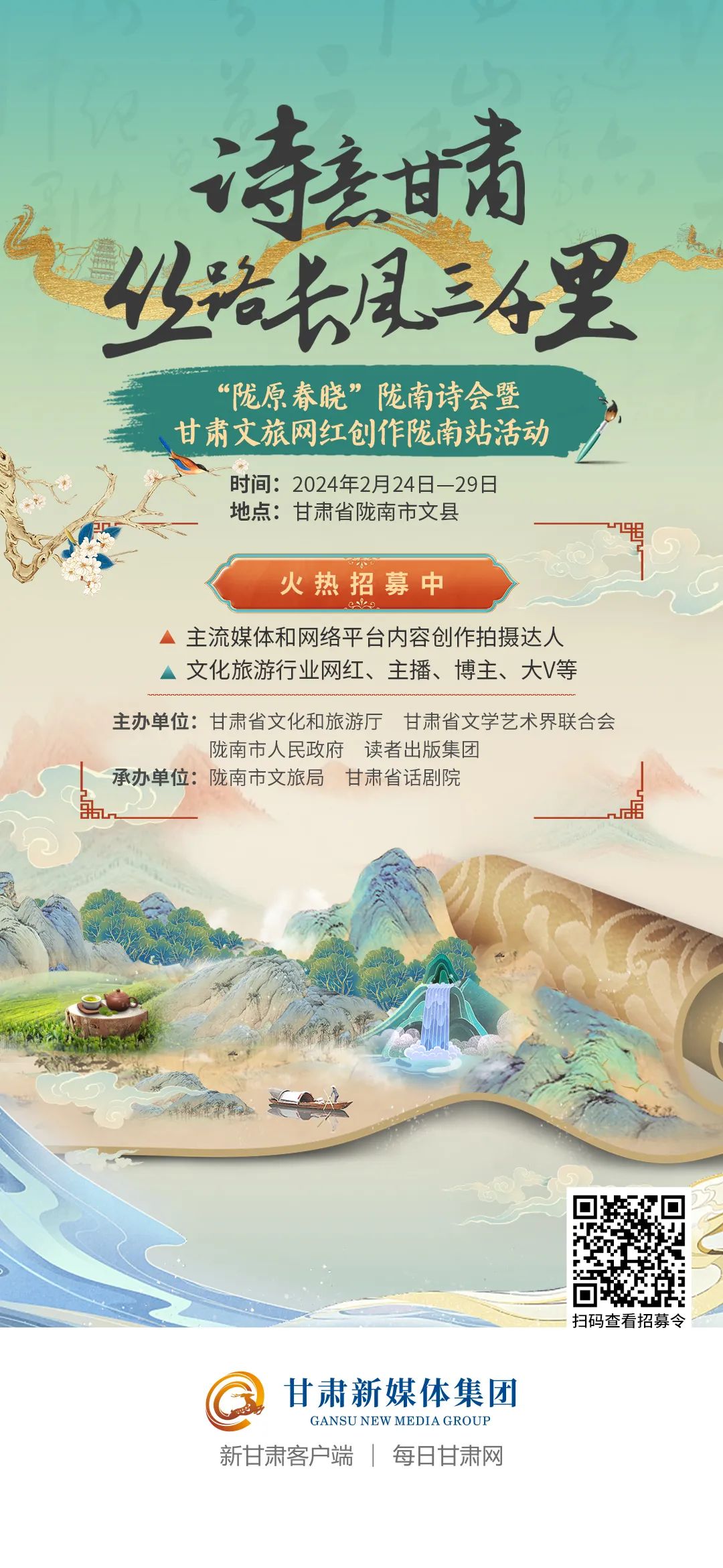 招募令 | “诗意甘肃·丝路长风三千里”邀您陇南相会