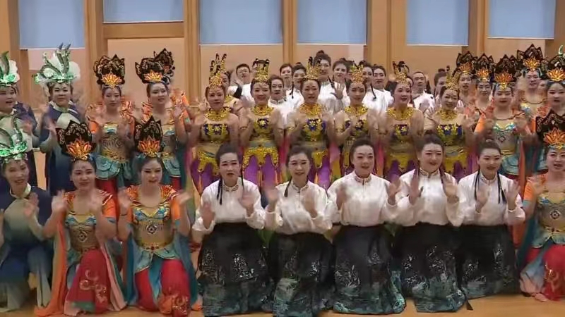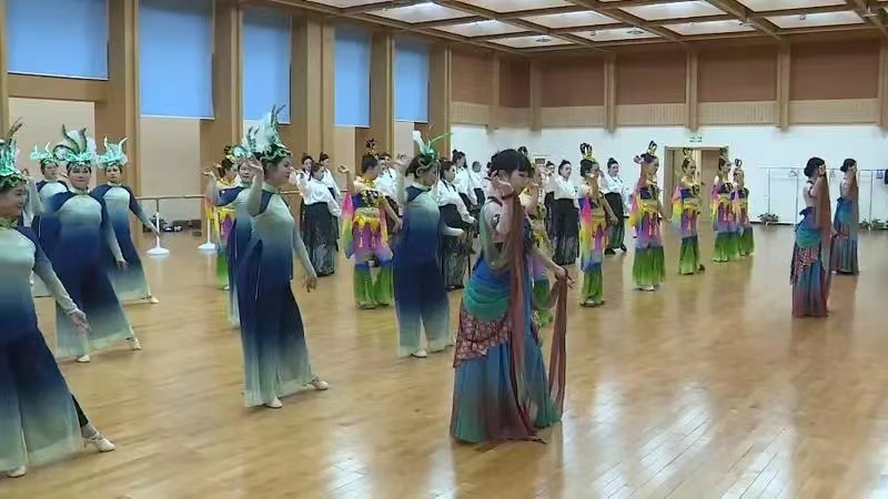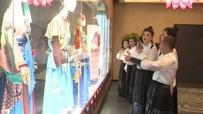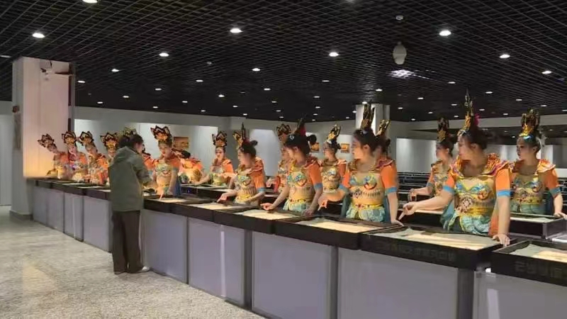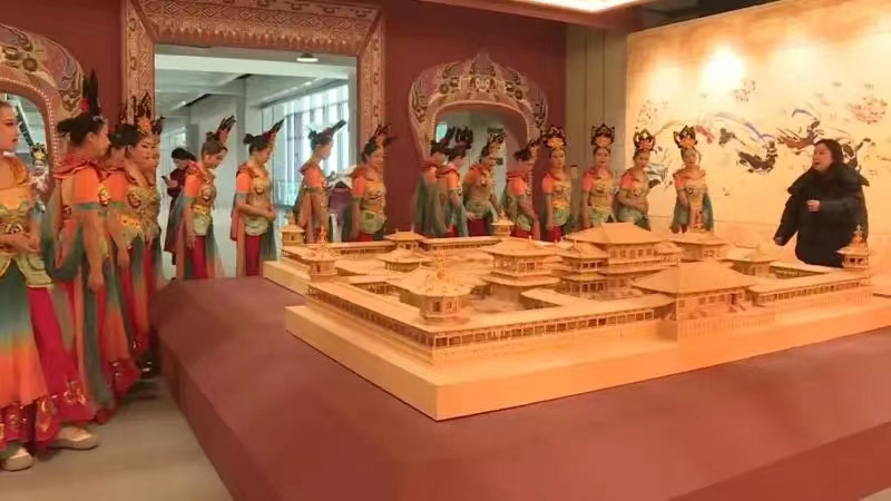 在敦煌文化主题展现场,身着飞天服装的研学学员好像回到了“家”中,通过讲解员的详细讲解,她们对敦煌文化有了更深的了解。