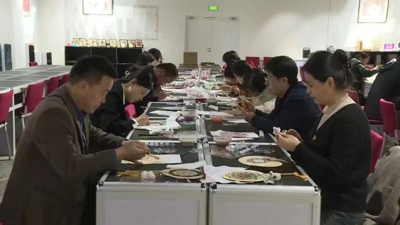 在敦煌国际会展中心沙画研学馆,授课老师正在向大家讲解制作沙画的技巧,学员跟着老师感受着一捧捧细沙在手中的形态变化,体会沙子从手中滑向沙盘的节奏感,逐渐掌握了沙画的奥秘,最终呈现出有趣的艺术作品。
