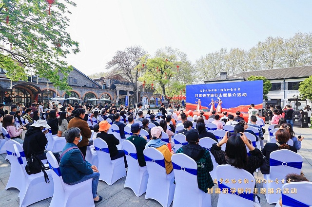 4月9日下午,甘肃省文化和旅游厅组织的“逐梦丝路古韵·相约如意甘肃”甘肃研学旅行专题推介团队来到了江苏省镇江市西津渡鉴园广场,在“快闪+路演”主题宣传活动中与镇江市民见面。