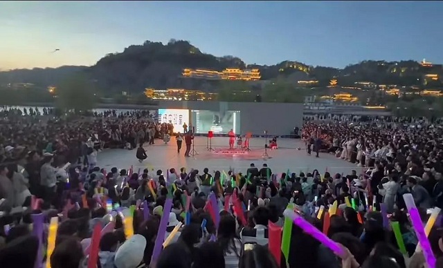 五一劳动节5天假期,兰州“黄河大合唱”以“顶流”的吸引力召唤着全国各地的网友来到兰州,感受一场酣畅淋漓的万人大合唱。“五一”当天,带火“黄河大合唱”的兰州本土乐队“声场实验室”在抖音平台发出了预告——“晚7:30,云峰广场西侧,我们不见不散”。