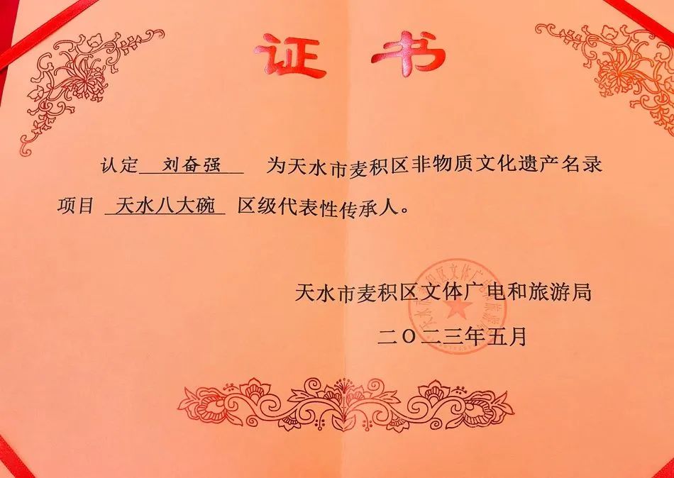 “我们家从我爷爷开始就做天水民间的流水席,从我父亲开始就逐渐专业化了,我就想为‘八大碗’注入更多的元素,让‘八大碗’做得更精致、更规范、更专业化,让‘八大碗’成为一种情怀,让十里八乡的父老乡亲想吃随时就能吃上一口可口的饭菜。”刘奋强深有感触地说,“作为‘八大碗’的非遗传承人,其实我和父亲的初心就是为了让在外的游子回到家乡以后能品尝到家乡的味道,也希望外地的游客在这里品尝到天水正宗的味道,希望通过传承让我们天水的美食走得更远。”