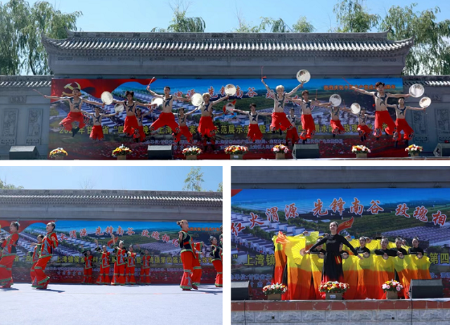 此次全省“四季村晚”夏季示范展示活动与“上湾镇第四届渭水南谷玫瑰文化旅游节”同期举办。主要活动包括“四季村晚”——示范展演、“四季村晚”——广场舞比赛、“四季村晚”——篝火晚会,以及文化、科技、卫生“三下乡”、渭水南谷玫瑰“线上+线下”销售推介、唱支红歌给党听 喜迎七·一“红歌大家唱”、上湾镇第三届篮球运动会、农特产品和特色美食展销等内容。展演活动在上湾学校堂鼓队铿锵的鼓点中开启,抖动的红绸,像鲜艳的火炬,隆隆的鼓声,带着阳光和空气一起舞动,赢得全场观众一片欢呼;上湾镇政府干部职工编排的舞蹈《唱支山歌给党听》向中国共产党103周年华诞献礼,祝愿祖国繁荣昌盛、国泰民安!流传千年的“羌蕃鼓舞”蕴藏着藏羌文化的活态载体,悠远的鼓声,精湛的技艺,展现出中华优秀传统文化的生生不息!渭源本土花儿表演《花儿联唱》,展示了上湾镇丰富多彩的民俗风情,多元融合的地域文化;独唱《娘家河》,寄托着当地百姓寻根溯源的情怀,对母亲河孕育一方水土的珍爱。
