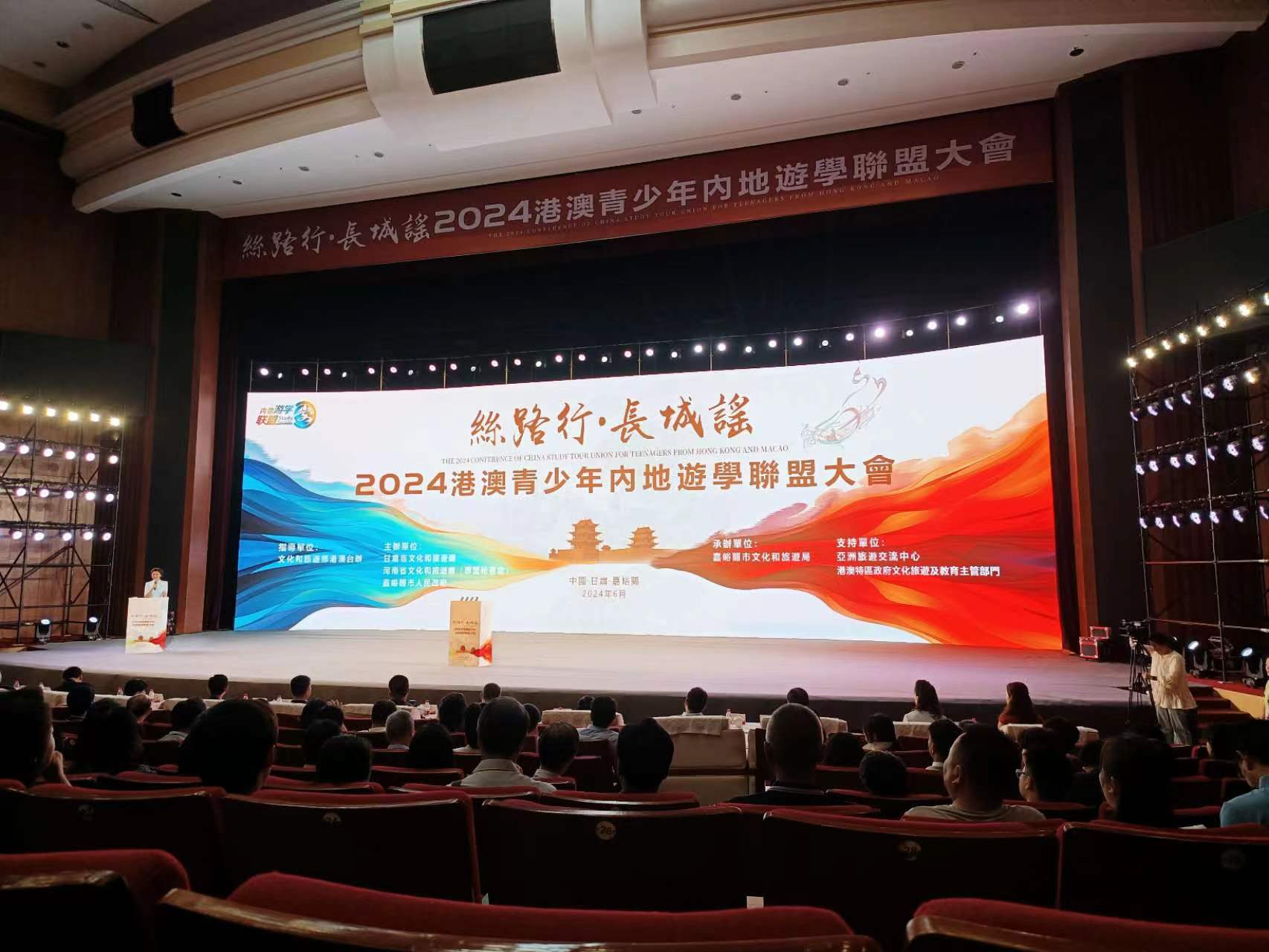 2024年6月24日上午,甘肃省文化和旅游厅与嘉峪关市人民政府共同主办的港澳青少年内地游学联盟大会在甘肃省嘉峪关市隆重举办。文化和旅游部港澳台办负责同志、中央港澳办、共青团中央和来自内地和港澳地区文化和旅游行政部门、游学机构、行业协会代表以及港澳地区35所中小学的校长、师生代表近300人参加了此次盛会。
