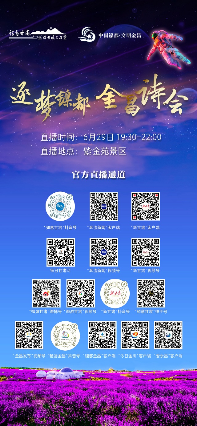 “逐梦镍都·金昌诗会”将继续通过“如意甘肃”抖音号、“新甘肃”抖音号、“微游甘肃”新浪微博等平台进行同步直播。(文/甘肃省文化和旅游厅 陈锦)