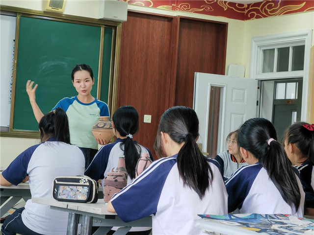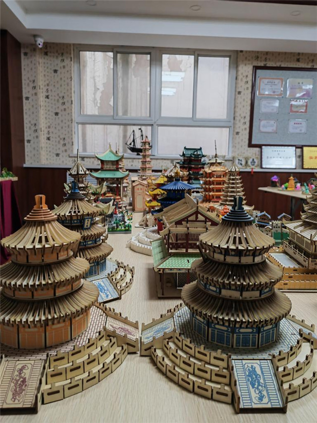 在工作坊的展览桌上,摆放着一栋栋木棍搭建和纸卷搭建的历史建筑模型。现在李毅正在尝试将陶艺课的知识和历史、语文、生物等主课进行融合。“比如高一年级上《中国建筑的特征》课,我主动和语文老师合作,一起带领同学们制作一些古建筑模型,让学生在制作过程中,掌握更多的知识,了解历史文化背景,认识楼体的每一个结构、每一个纹饰图案,使陶艺课发挥更大作用。”(文/新华社记者 白丽萍 徐皓夫 图/新华社记者 白丽萍)