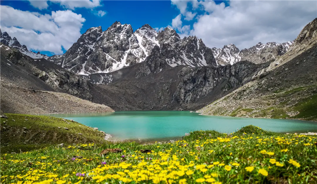 走进冰沟河景区,你可以顺着木栈道漫步,欣赏万亩马兰花草原;也可以在尼美拉大峡谷的吊桥上和同伴一起感受摇摆的刺激;更可以在雪山环绕的柴尔龙海天池边许个愿;最后在大可汗行营的藏包中品味特色藏餐。