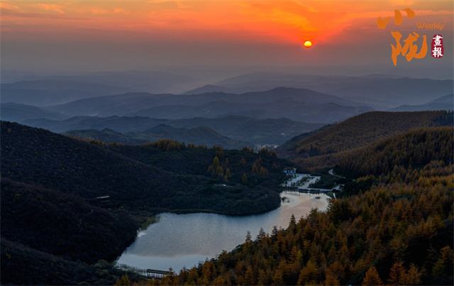 冬日黄昏的余光铺洒在山间,山映水中,水流山间,湫映碧绿,山光水色,浑然一体,相得益彰,如诗如画。