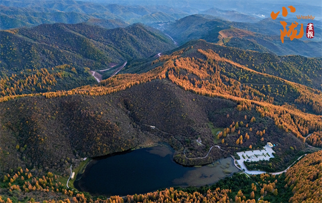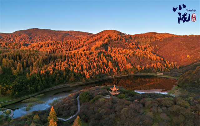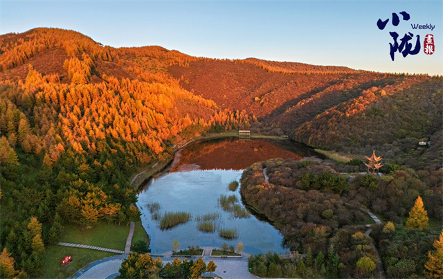 初冬,庄浪县郑河乡湫头山的朝那湫,层林尽染,迭翠流金,构成了一幅美丽的画卷。