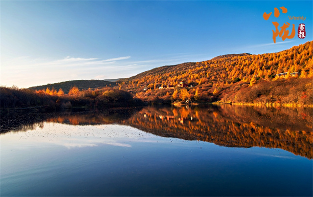 群山环抱里的朝那湫,水面开阔,清澈透明,周围层林尽染,蓝天、芦苇倒影在明净的水面上,恰似一幅绝妙的山水风景图。