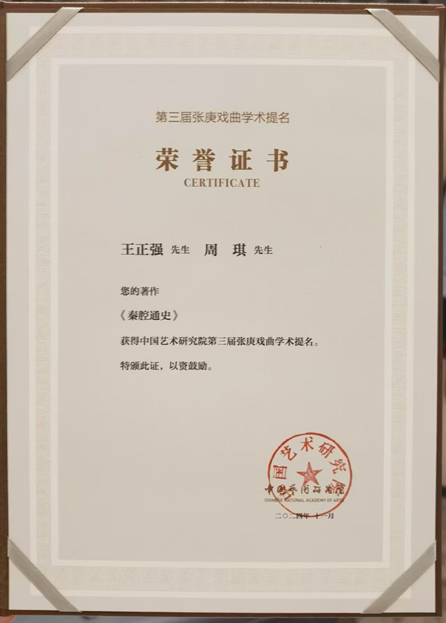 甘肃省文化艺术研究院《秦腔通史》获得张庚戏曲学术提名
