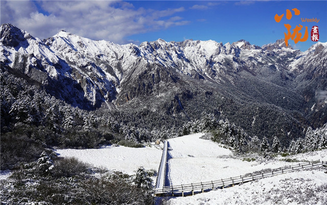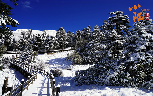 厚厚的雪层堆在树枝上、铺在栈道上,宛如一片洁白的海洋,别有一番风味。