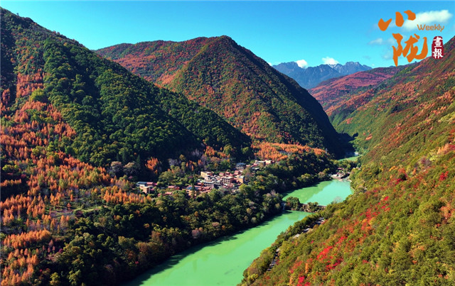初冬的官鹅沟,秋景仍不谢幕。灿金火红,深绿赭褐,多情的色彩渲染出别样韵味,一切依然是温暖的模样。