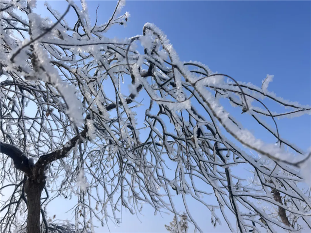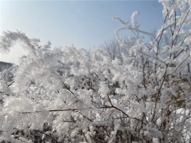 原本普通的树枝上挂满了晶莹剔透的雾凇,它们形态各异,有的像绽放的花朵,有的似毛茸茸的银针,在阳光的映照下闪烁着迷人的光芒,如梦如幻,仿佛将人们带入了一个冰清玉洁的仙境之中。