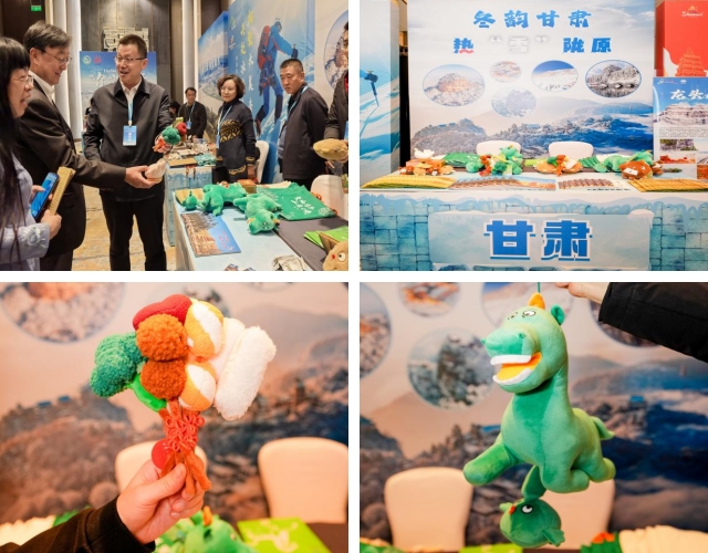 活动期间,还配套举办了各省(区、市)冬季旅游产品和冰雪装备展览。甘肃省呆萌的“冻梨”、可爱的“土豆”、毛茸茸的“玩偶麻辣烫”、“拿捏·胖手”毛绒玩具及三泡台等特色文创、特产在活动现场吸引了众多参会嘉宾的关注与喜爱。