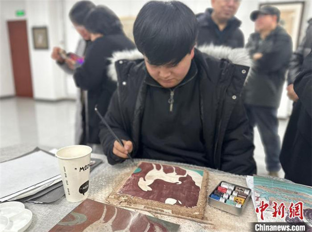 图为青年画师现场绘制岩彩画。杨娜 摄