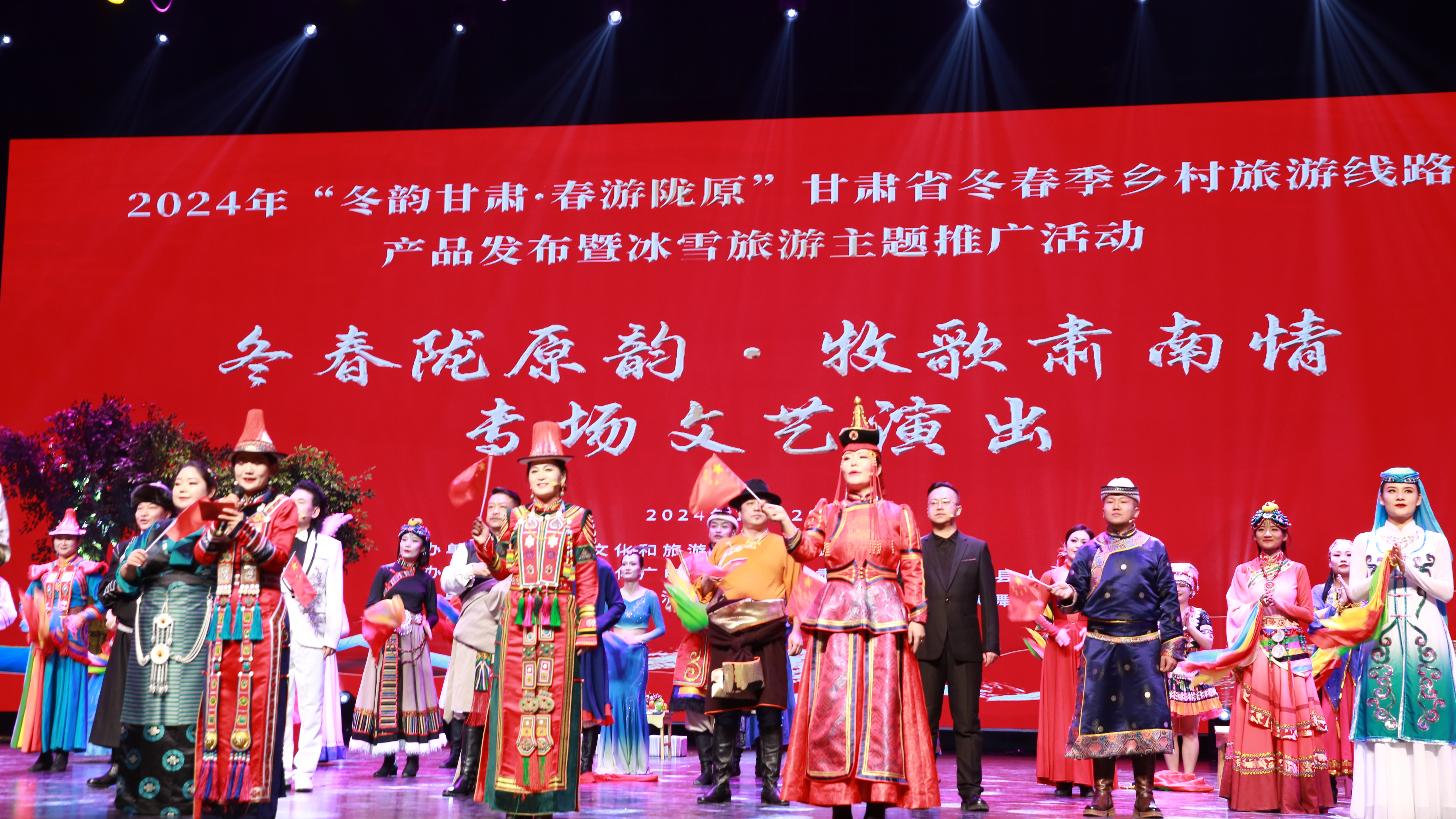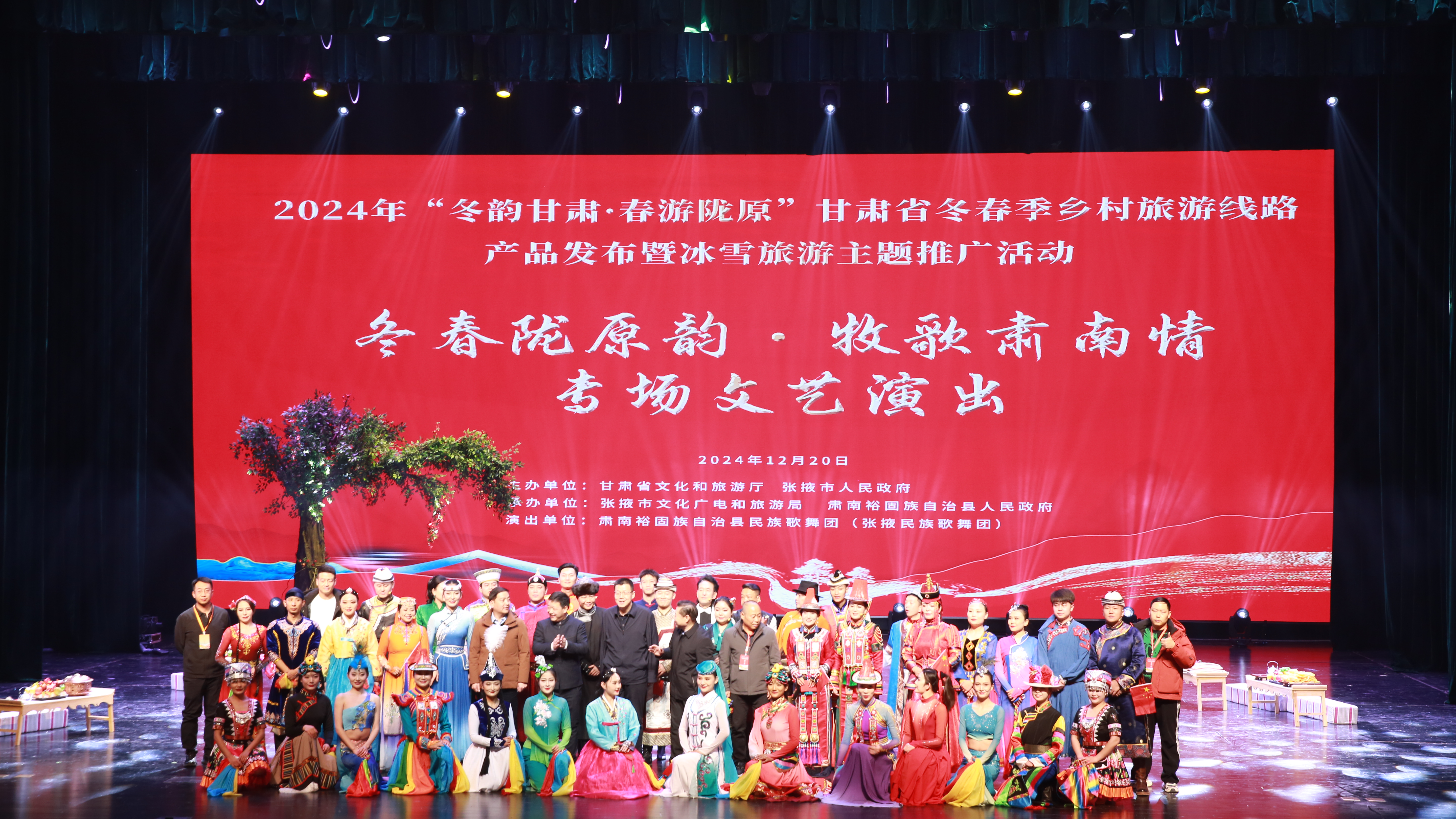 2024年12月20日晚,由甘肃省文化和旅游厅、张掖市人民政府主办的2024年“冬韵甘肃·春游陇原”甘肃省冬春季乡村旅游线路产品发布暨冰雪旅游主题推广活动——“冬春陇原韵·牧歌肃南情”文艺演出在张掖市丝绸之路文化艺术中心张掖大剧院成功举办。