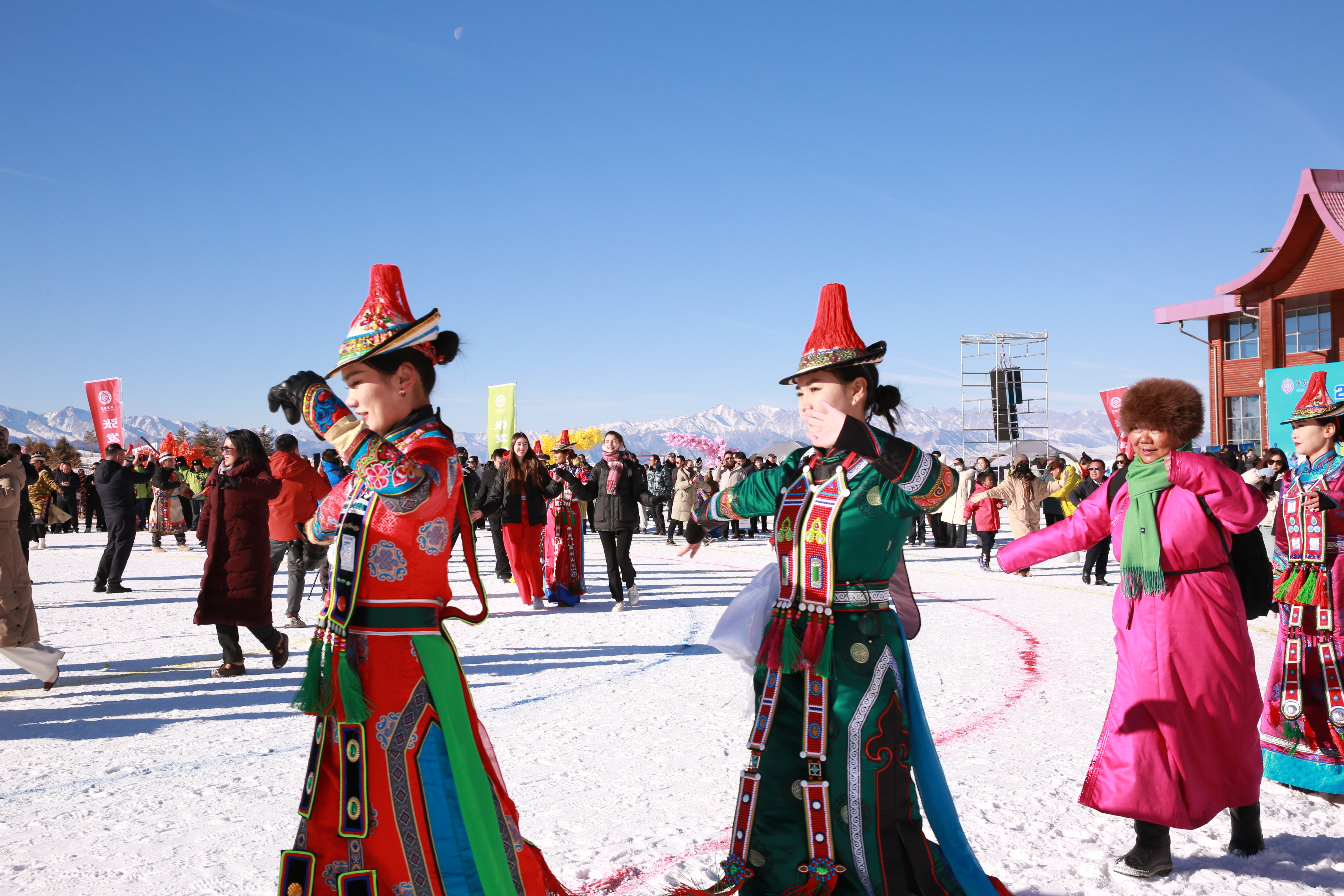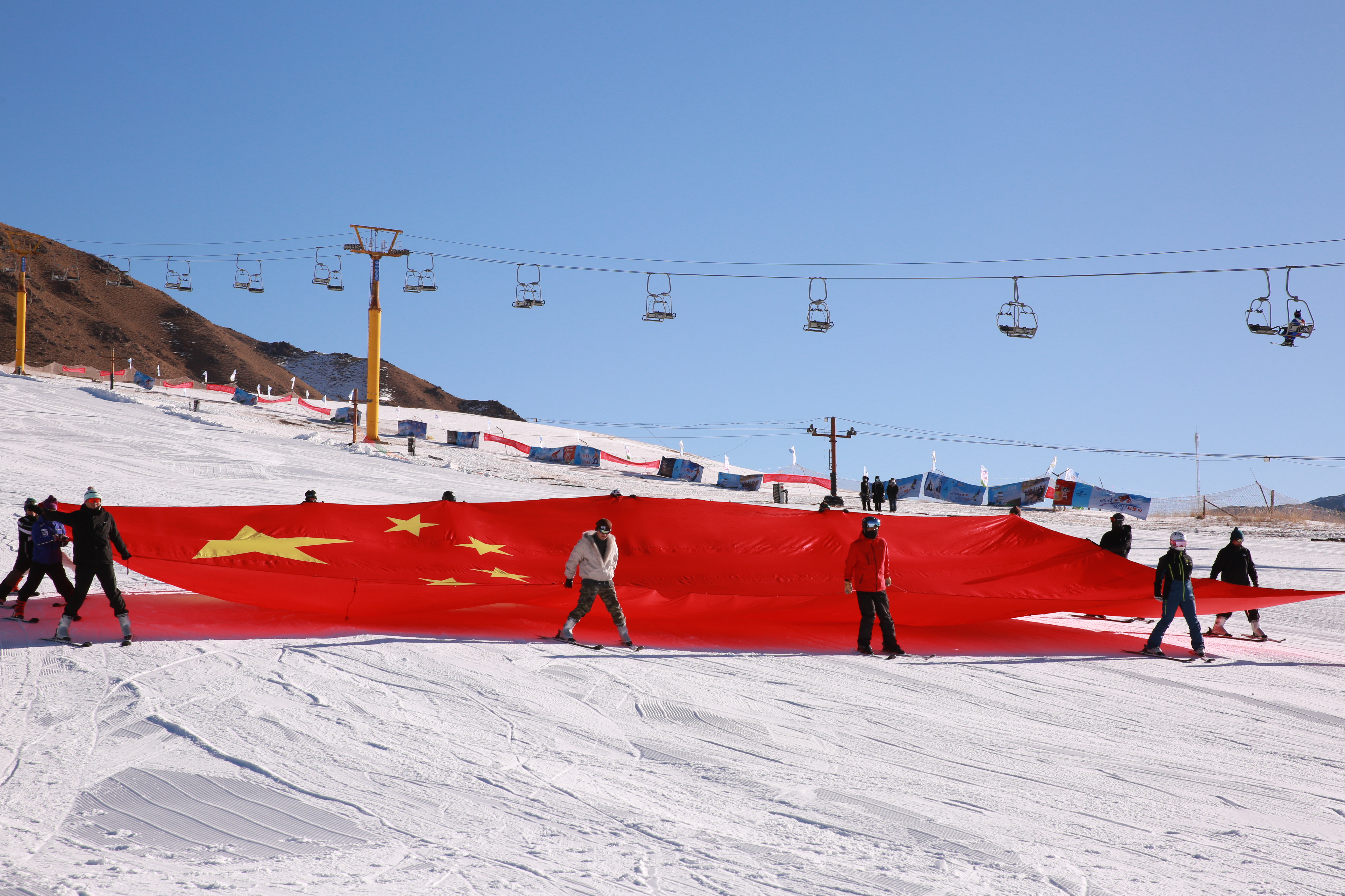 活动现场,2000多名冰雪运动爱好者和游客进行《我爱我的祖国》滑雪表演、千人锅庄舞、雪地拔河、雪地投箭、滑雪等丰富多彩的活动,体验冰雪运动带来的乐趣,感受雪场上的欢乐和激情。