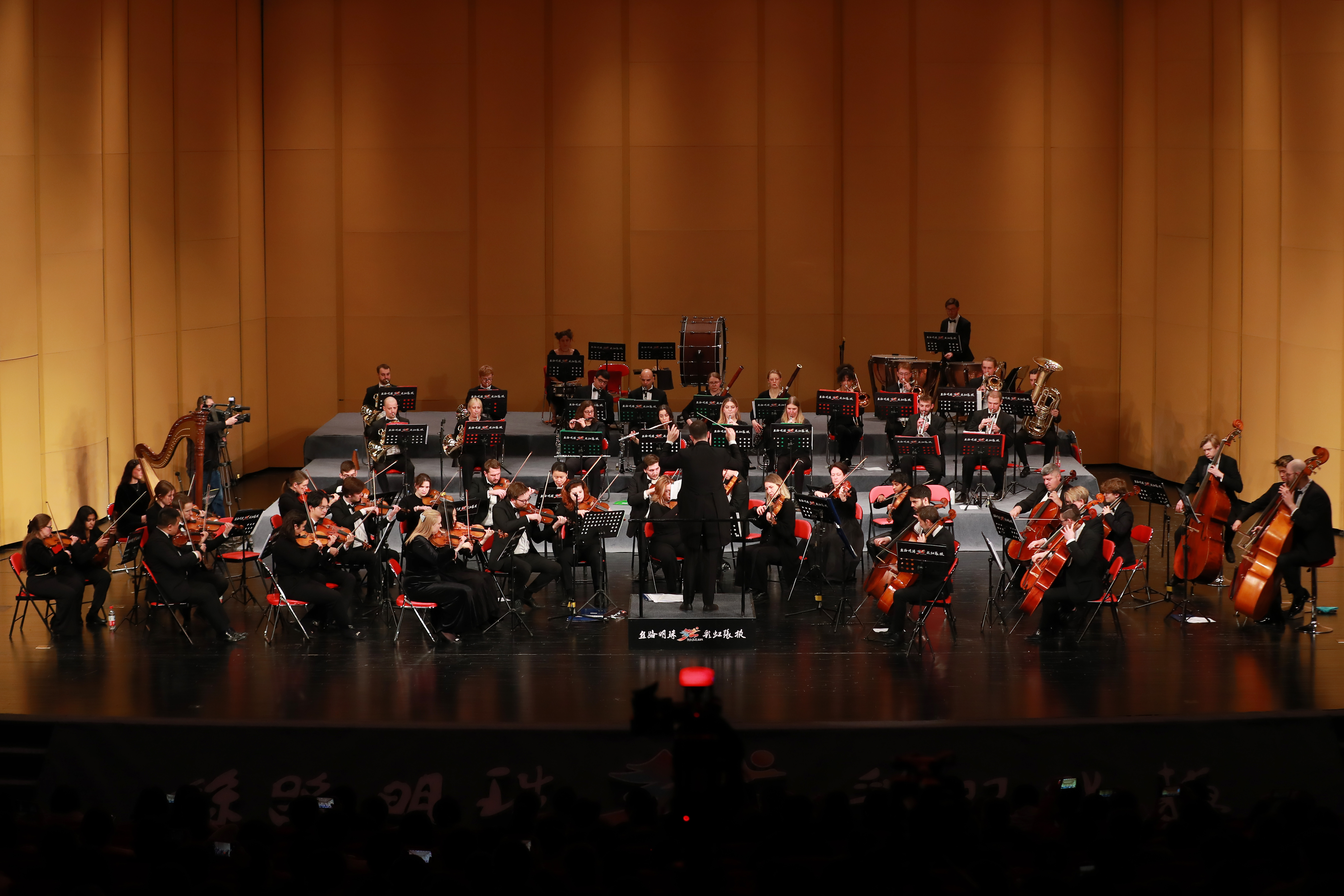音乐会上,殿堂内座无虚席。作为此次演出的英国伦敦城市爱乐乐团为广大观众带来了一场音符与灯光交织而成的音乐盛宴。观众们满怀期待地聆听来自世界各地的经典旋律,享受到了一次音乐艺术的洗礼和升华。