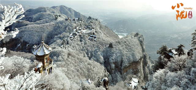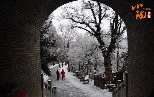 纷纷扬扬的雪花,让崆峒山穿上了冬装,而三三两两的游人给简白的山间点缀了色彩。