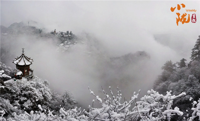 山巅楼阁格外安静,默默地藏匿在白雪皑皑中,仿佛在诉说着冬天美好的故事。