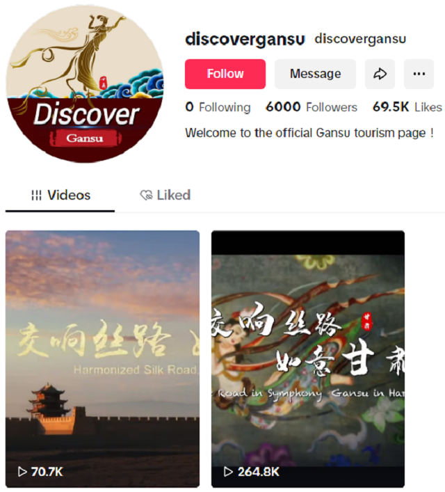甘肃文旅Discover Gansu账号在TikTok平台正式上线