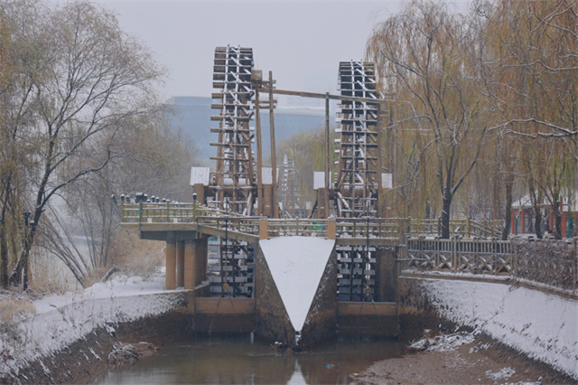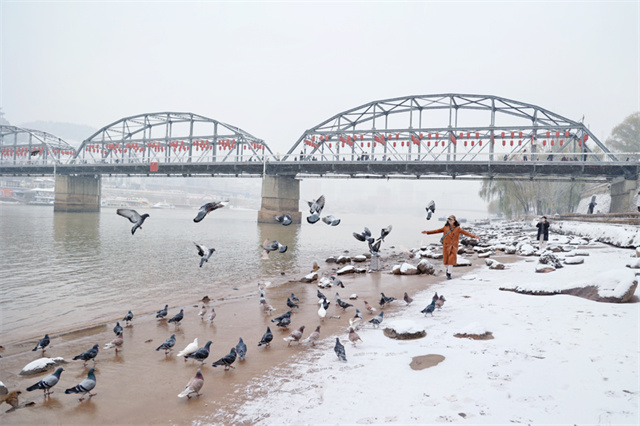 雪花飘落,黄河更显壮阔静谧。潺潺流水携银光穿城,两岸雪覆林木远山,雪花轻触河面即逝,为奔腾河流添柔情静美,令人赞叹自然之妙与岁月之宁。