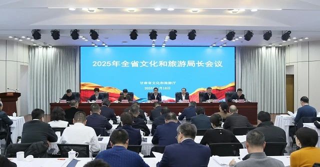 1月18日,2025年全省文化和旅游局长会议在兰州召开。会议以习近平新时代中国特色社会主义思想为指导,深入学习贯彻习近平文化思想和习近平总书记视察甘肃重要讲话重要指示精神,认真贯彻落实全国文化和旅游厅局长会议精神,按照省委经济工作会议、全省宣传部长会议要求,全面总结工作,科学分析形势,研究部署2025年全省文化和旅游重点工作。省文旅厅党组书记、厅长何效祖出席会议并讲话,厅党组成员、副厅长吕兴来主持会议,厅党组成员龚佳佳、李殿俊、闫永强、王治纲、张盛贵出席会议。