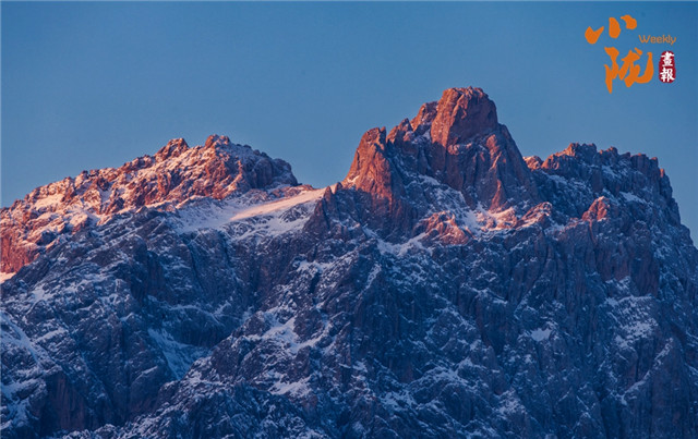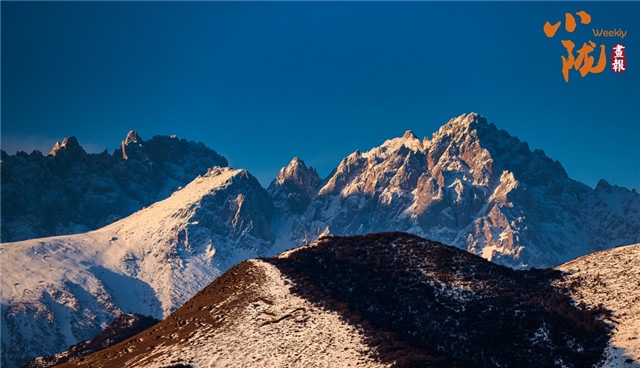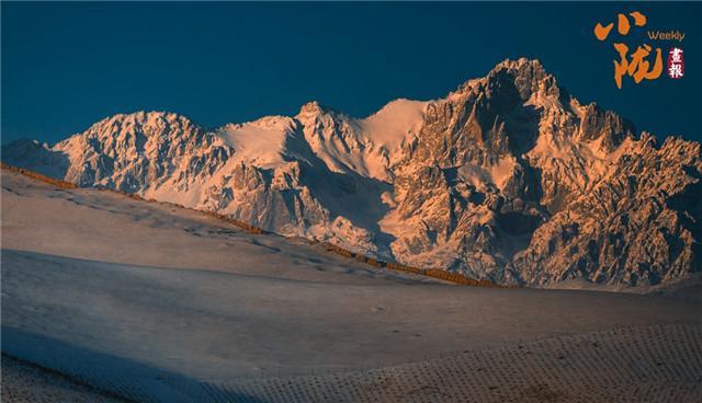 当清晨的第一缕阳光从天而降,雪山逐渐被染成鲜亮的橘色,金光慢慢洒向山头,景色如诗如画。