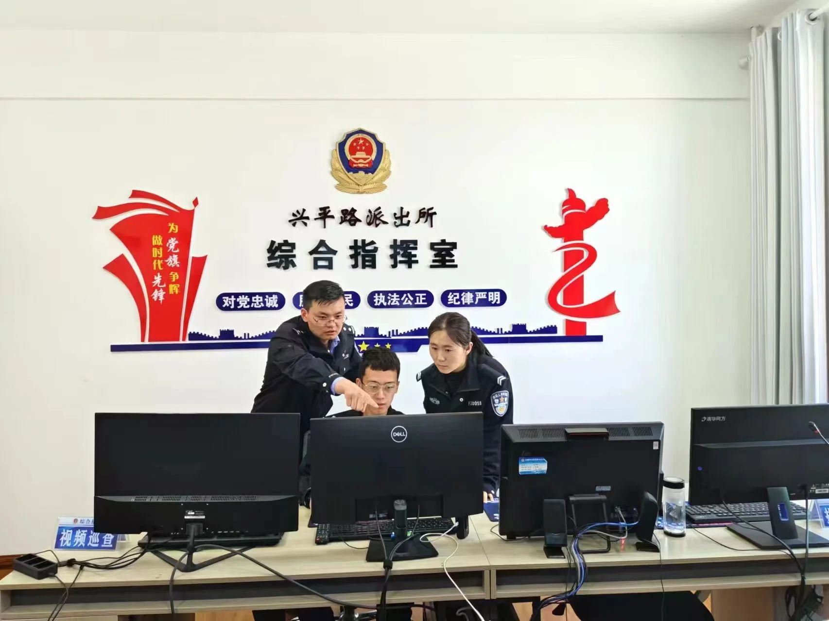 在兴平路派出所综合指挥室,巨大的电子屏幕上,实时显示着辖区内各个重点区域的监控画面,智慧警务的力量尽显无遗。