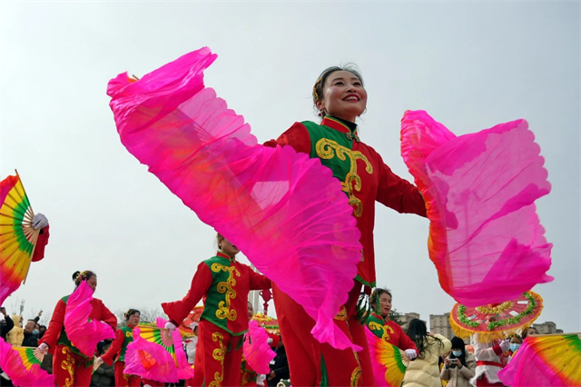 喧天的锣鼓敲起来,欢庆的秧歌扭起来。2月6日,绿地广场上人头攒动,社火表演把新春的祝福带来了。伴着喧天的锣鼓、春官们挥舞着手中的羽扇,一句句带着新春美好祝福的春官诗脱口而出,语句诙谐幽默,围观者笑声不断,引得越来越多的市民群众前来围观。随后秧歌队、旱船、舞狮表演相继入场,更把现场的气氛推向了高潮。