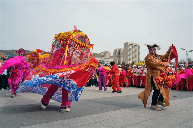 锣鼓喧天,年味愈浓。社火表演热闹非凡,活动现场街道上人头攒动,一片欢腾。伴随着铿锵有力的锣鼓声,各社火队依次亮相,装扮华丽的彩车缓缓行进,热情似火的秧歌队翩翩起舞,造型别致的马社火等精彩表演轮番上演,令人目不暇接,享受了一场视觉与听觉的双重盛宴。