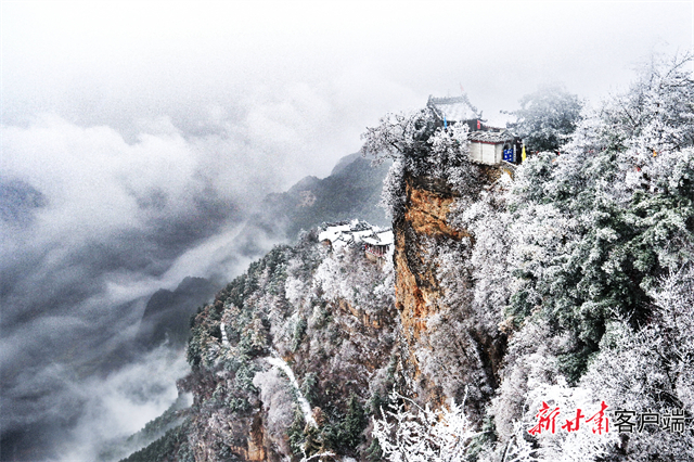 雪后的成县鸡峰山国家森林公园银装素裹,宛如仙境。