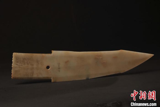 图为藏于甘肃庆阳市博物馆的中国国宝级文物“乍册吾”玉戈。(资料图)庆阳市博物馆供图