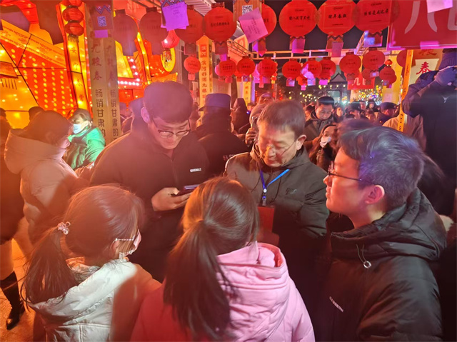 夜幕降临后,千盏“卍”字灯笼点亮永昌夜空,营造出“万家灯火庆团圆”的节日氛围。灯谜竞猜活动吸引了众多市民参与。谜题巧妙融合非遗知识、地方文史和时代热词,既有文化深度,又贴近生活。